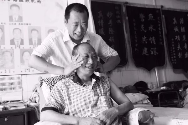 沈汝波為雷鋒的首任班長(zhǎng)薛三元按摩